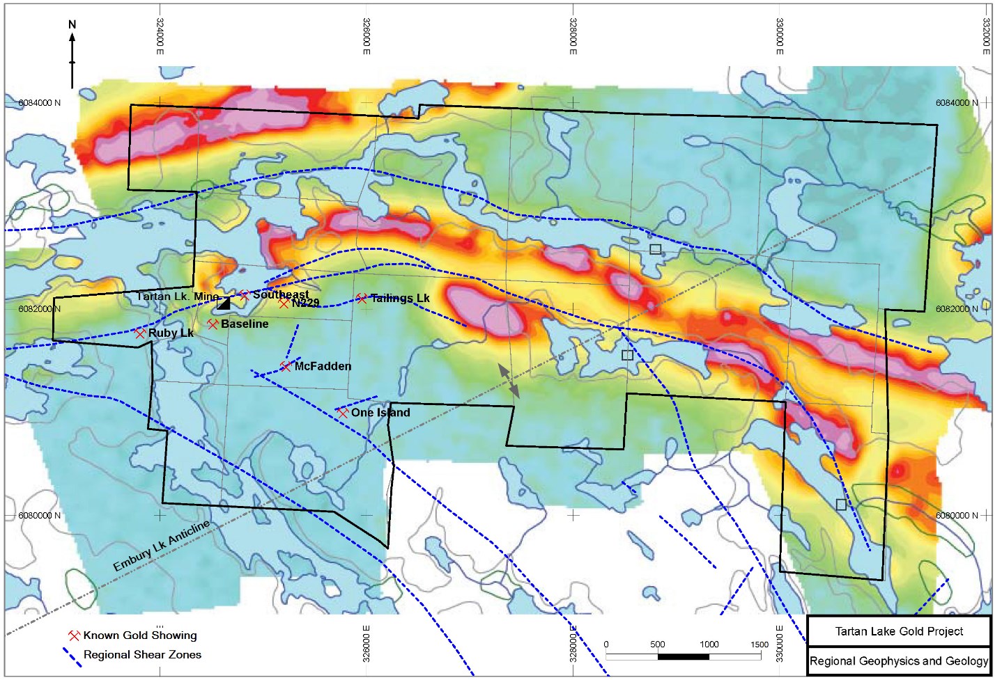 Wes Hanson, P. Geo, and a Director of the Company states; “We are very encouraged with the observations to date which support our view that Tartan Lake offers a dual path to drive stakeholder value. This is a road accessible property, in an established, world class mining district, with considerable infrastructure in place and demonstrated potential to host anomalous gold mineralization. Historic mine production (1987-1989) averaged 5.78 g/t gold from the Main and South Zones to a depth of 300 metres from surface. The historical pre-mining mineral reserve estimate (Kilborn 1986) estimated a total reserve of 623,000 tonnes averaging 8.50 g/t Au containing 170,000 ounces of gold. Approximately 50% of that pre-mining reserve remains in place and is fully developed. Our compilation work to date strongly suggests that the mineralization remains open at depth along plunge and there is compelling evidence suggesting potential for additional discoveries outside of the resource area but within 1000 metres of the existing mine infrastructure, based on historical sampling and drilling which we continue to evaluate. We continue to review the available data and are focusing on finalizing our exploration plan and budgets in the coming weeks with a view to initiating a diamond drill program and other such exploration activities in Q1-2021; provided no additional COVID restrictions are initiated that would affect our plans.”